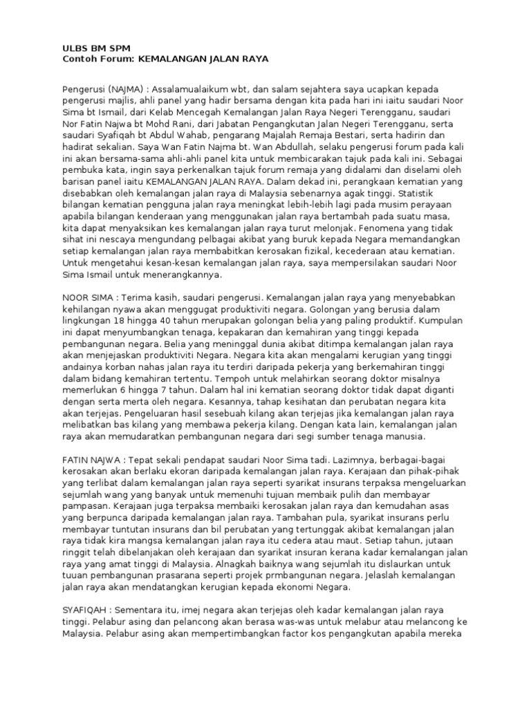 Contoh teks forum masalah gejala sosial dalam kalangan masyarakat. Contoh teks ujian lisan bahasa melayu tingkatan 4 berkumpulan. I will be having my spm.